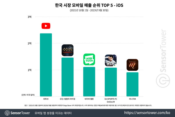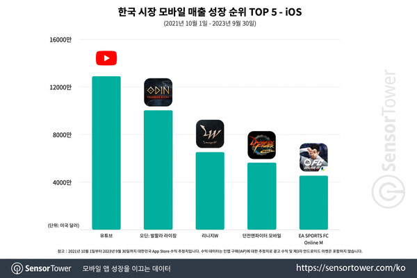이를 통해 《유튜브》는 한국 모바일 시장에서의 위치를 더욱 공고히 했습니다. 지난 2년간 한국 앱스토어 전체 카테고리 기준 매출 순위에서 《유튜브》는 인기 모바일 게임인 《오딘: 발할라 라이징》, 《EA SPORTS FC Online M》, 《리니지M》은 물론 웹툰 플랫폼인 《네이버 웹툰》을 제치고 1위 자리에 올랐습니다. 2위 《오딘: 발할라 라이징》과 1.6배라는 매출 격차는 상위권에 있는 다른 앱 간의 차이보다 훨씬 큰 수치였습니다.