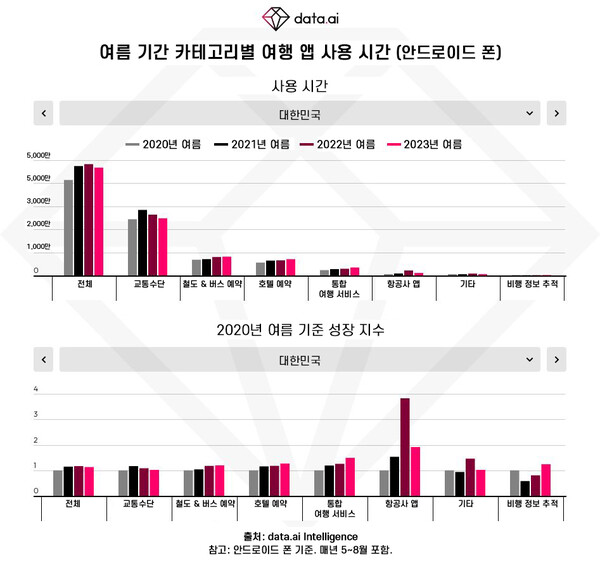 여름 기간에도 여행 앱 인기… 교통수단, 철도·버스 예매 앱 사용 시간 높아