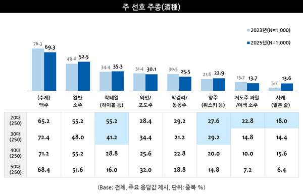 선호 주종, ‘맥주’, ‘소주’ 압도적... 10명 중 7명, 최근 ‘일본 술(사케)’ 마셔 본 경험 있어