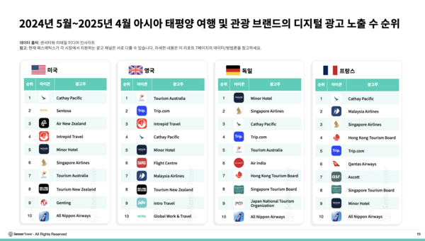 센서타워, ‘2025년 아시아 태평양 여행 및 관광 브랜드의 디지털 광고 인사이트’ 리포트 발표