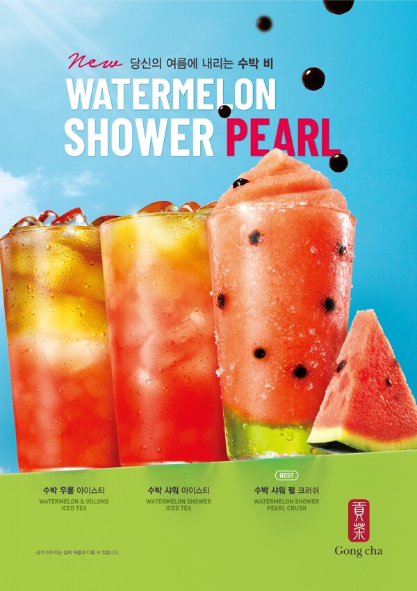 ‘공차에 수박 비가 내린다면?’이라는 재치 있는 상상에서 출발한 이번 신제품은 청량한 수박과 공차만의 프리미엄 티베이스가 조화를 이루며 눈길을 끈다. 이번 신메뉴는 ▲수박 샤워 펄 크러쉬 ▲수박 샤워 아이스티 ▲수박 우롱 아이스티 등 총 3종으로 구성되며, 무더위에 지친 입맛을 깨우는 올여름 베스트셀러로 기대를 모은다.