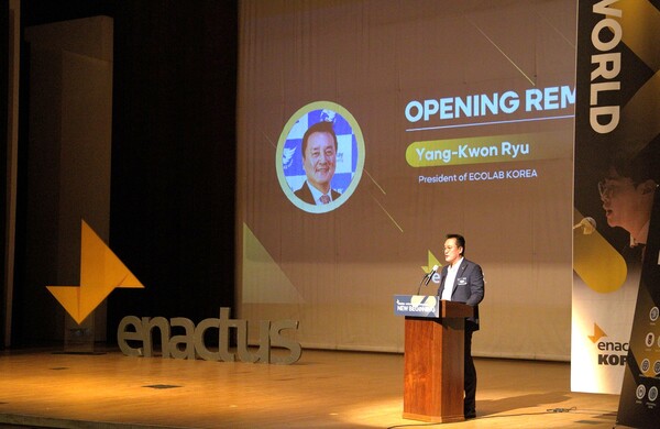 물, 위생 및 감염 예방 분야에서 ESG 통합 솔루션을 제공하는 글로벌 화학기업 한국이콜랩(대표 류양권)이 지난 11일부터 12일까지 건국대학교 새천년관에서 열린 ‘2025 인액터스 코리아 국내대회’에 참석했다. 이번 대회에서 류양권 대표는 결승전 심사위원과 개회 축사자로 나서며 참가자들의 활동을 피드백하고 격려를 보냈다. 한국이콜랩은 지난2021년부터 4년째 ‘인액터스 코리아(Enactus Korea)’를 후원하고 있다.
