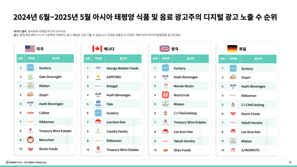 센서타워, ‘2025년 아시아 태평양 식품 및 음료 브랜드의 디지털 광고 인사이트’ 리포트 발표