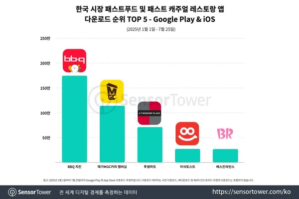 이처럼 경쟁이 치열한 시장 환경 속에서 BBQ 치킨은 자사 앱을 중심으로 사용자 확보에 적극적으로 나서고 있습니다. 센서타워의 패스트푸드 및 패스트 캐주얼 레스토랑 카테고리에서 《BBQ 치킨》은 한국 시장에서 다운로드 기준 1위를 기록하며, 《메가MGC커피 멤버십》, 《투썸하트》와 같은 주요 카페 프랜차이즈는 물론 《베스킨라빈스》, 《이삭토스트》 등 다양한 브랜드를 제치고 선두에 올랐습니다.
