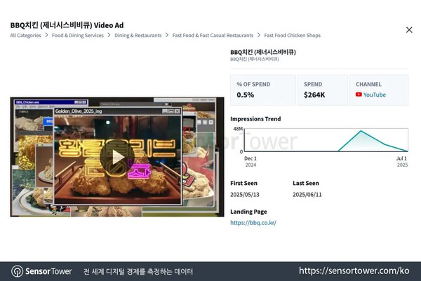 국내 식음료 디지털 광고, 치킨 프랜차이즈 소재가 노출 수 상위권 석권… BBQ 치킨, Z세대 공략으로 두각
