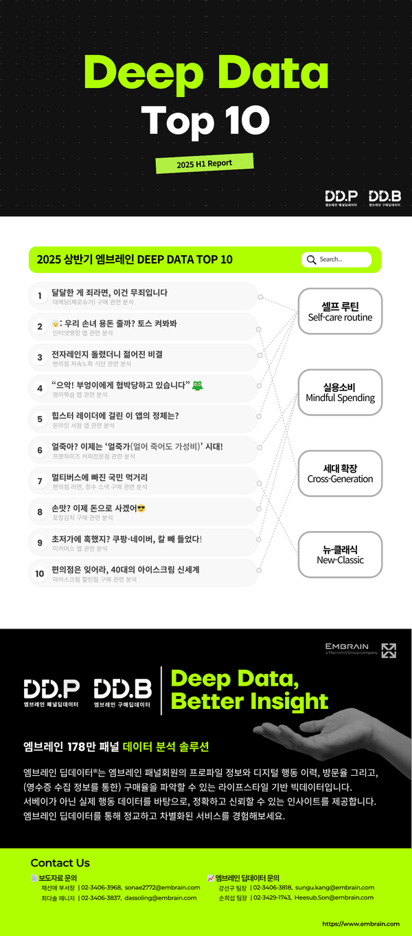 2025 상반기, ‘딥데이터’ 소비 트렌드 이슈... 셀프루틴·실용소비·세대확장·뉴클래식