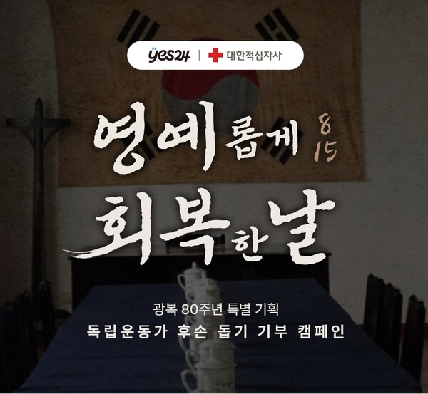 문화콘텐츠 플랫폼 예스24가 대한적십자사와 손잡고 광복 80주년 기념 ‘독립운동가 후손 돕기 기부 캠페인’을 실시한다.