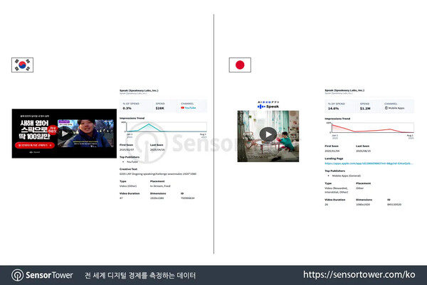 《스픽》의 성장에는 공격적이며 효율적인 광고 전략이 큰 역할을 했습니다. 2025년, 《스픽》은 한국과 일본에서 광고비와 노출 수 모두 교육 앱 중 1위를 기록했으며, 특히 ‘새해 다짐’ 시즌인 1월에 광고를 집중해 효과를 극대화했습니다.