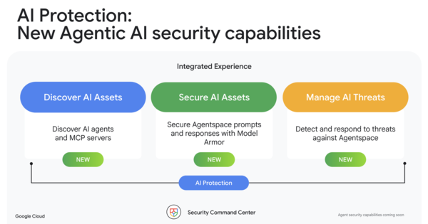 구글 클라우드는 시큐리티 커맨드 센터(Security Command Center)의 AI 보호(AI Protection) 기능을 통해 기업이 에이전트가 활용하는 민감 데이터를 보호하고, AI 상호작용 과정에서 발생할 수 있는 위협에 대응할 수 있도록 지원해 왔다.