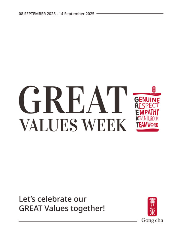 글로벌 프리미엄 밀크티 브랜드 공차코리아는 전 세계 고객과 브랜드의 핵심 가치를 공유하는 글로벌 캠페인 ‘그레이트 밸류 위크(GREAT VALUE WEEK)’를 맞아 9일부터 15일까지 다양한 프로모션을 진행한다고 밝혔다.