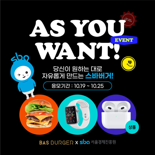 스바버거 레시피 공모 수상자에게는 풍성한 혜택을 제공할 예정이다. △1등(1명)에게는 선정된 레시피로 바스버거 매장에서 ‘스바버거 세트’가 출시되며 애플워치를 제공한다. △2등(1명)에게는 에어팟과 함께 바스버거 상품권 2만원권이 부상으로 제공되며 △3등(9명)은 바스버거 상품권 2만원권이 주어진다.