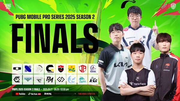 ㈜크래프톤(대표 김창한)은 ‘마운틴듀 배틀그라운드 모바일 프로 시리즈(PUBG MOBILE PRO SERIES, 이하 PMPS) 2025 시즌 2 파이널’을 오는 9월 27일과 28일 양일간 대전 e스포츠경기장에서 유관중 경기로 진행한다고 밝혔다.
