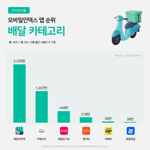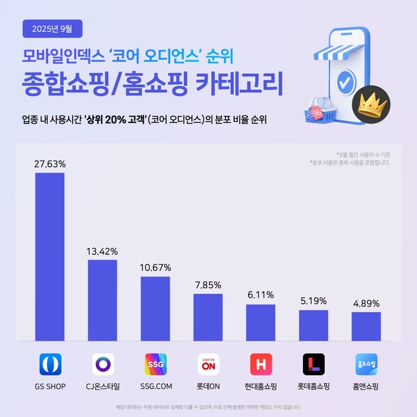 데이터 테크 기업 아이지에이웍스가 2025년 9월 주요 업종별 모바일 앱 사용자 수와 핵심 고객층인 '코어 오디언스(Core Audience)' 분포 순위를 분석한 '모바일인덱스 9월 주요 업종 앱 사용자 수 및 코어 오디언스 순위' 리포트를 공개했다. 본 리포트는 아이지에이웍스의 AI 기반 데이터 분석 솔루션 SCI(Synthetic Customer Intelligence)를 활용, 안드로이드 및 iOS의 통합 모바일 사용 데이터를 근거로 작성됐다.