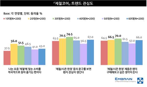 ‘제철코어’ 소비 트렌드에 대한 관심 높아져... 저연령층, 제철코어 핵심 소비층으로 꼽혀