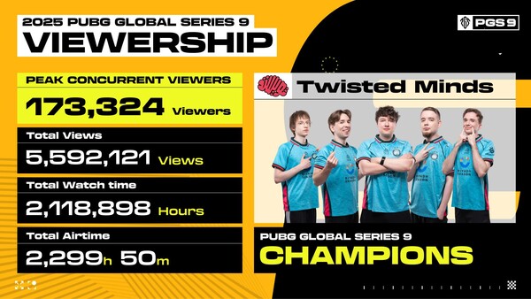 PGS 9과 PGS 10은 PGC 개막 전 마지막 글로벌 대회답게 역대급 시청 지표를 기록했다. PGS 9은 총 559만 2,121회 조회수, 누적 시청 시간 약 211만 8,898시간, 최고 동시 시청자 수 17만 3,324명을 달성했다. 이어진 PGS 10은 총 499만 8,650회 조회수, 시청 시간 243만 9,986시간, 최고 동시 시청자 수 22만 7,329명을 기록했다.