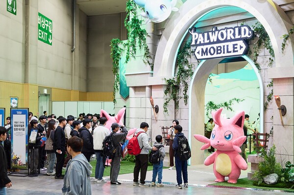 올해 크래프톤은 일본 게임 개발사 포켓페어(Pocketpair, Inc.)의 ‘팰월드(Palworld)’ 지식재산권(IP)을 기반으로 개발 중인 신작 ‘팰월드 모바일’을 주축으로 부스를 구성했다. 개막 직후부터 팰월드 모바일 시연을 위한 관람객들의 대기 줄이 이어졌으며, 일부 시점에는 최대 2시간 30분 이상 기다려야 할 정도로 높은 관심이 쏟아졌다.