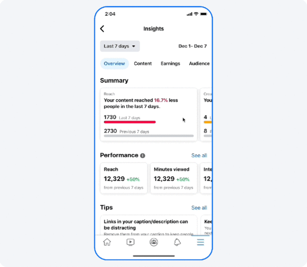 메타는 또한 새로운 계정 하이라이트 카드를 출시하여 시간 경과에 따른 콘텐츠 실적을 더욱 쉽게 확인할 수 있도록 했다.