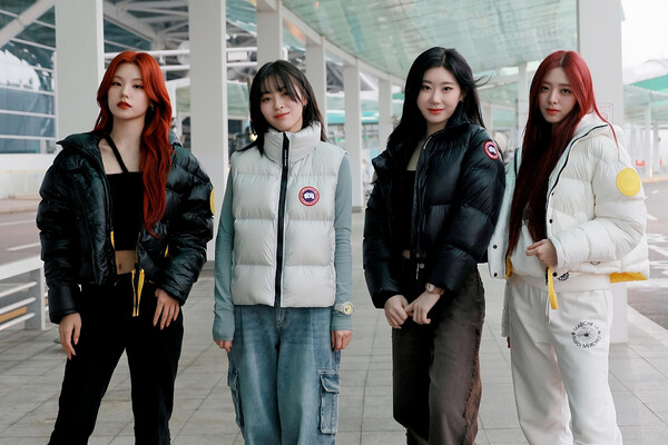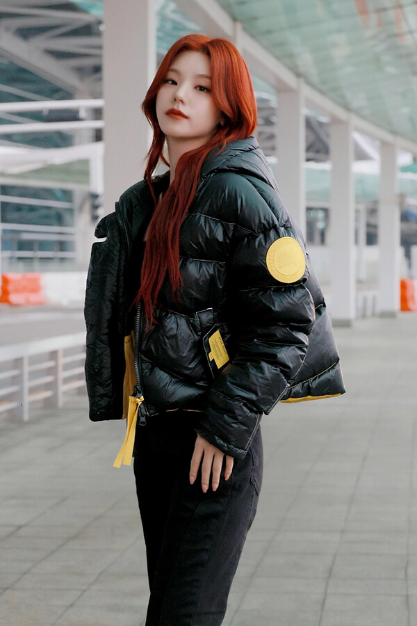 있지는 짧은 기장과 글로시한 소재가 돋보이는 캐나다구스의 FW23 신상품 컬렉션을 착용하며 퍼포먼스 럭셔리 감성의 패딩룩을 선보여 시선을 집중시켰다. 특히 예지와 유나는 10월에 출시한 캐나다구스와 파이어 모스(Pyer Moss)의 컬래버레이션 제품인 ‘파이어 모스 크롭 웨이브 푸퍼‘로 감각적이고 스타일리시한 공항패션을 완성했다. 류진과 채령은 크롭 기장의 실루엣과 은은한 광택 소재의 ‘싸이프레스 크롭 푸퍼‘와 ‘싸이프레스 크롭 베스트‘를 착용하며 FW23 시즌 트렌드를 반영한 겨울 스타일링을 완성했다.