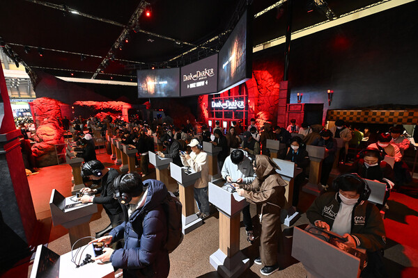 크래프톤은 다크앤다커 모바일을 관람객들이 게임을 직접 플레이해볼 수 있는 시연대 70석을 마련했다. 지스타 개막일인 16일 관람객들은 다크앤다커 모바일의 시연을 위해 2시간 이상 대기했다. 실제 시연에 참가한 관람객들은 ▲’원작의 느낌을 잘 살린것 같아서 좋았다’ ▲’긴장감과 몰입감이 뛰어났다’ ▲’조작 방식이 직관적이라 빠르고 쉽게 적응할 수 있었다’ 등 생생한 후기를 남겼다. 지스타 방문객들은 오는19일(일)까지 다크앤다커 모바일의 시연에 참여할 수 있다.