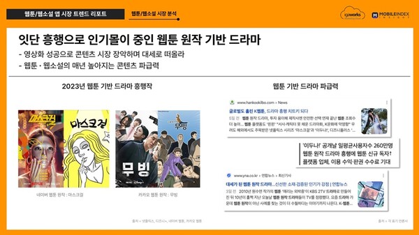 ‘마스크걸’, ‘무빙’ 등 웹툰 원작 기반 드라마가 연이어 흥행에 성공하며 시장 대세로 떠올랐다. 콘텐츠 파급력도 매년 높아지고 있다.