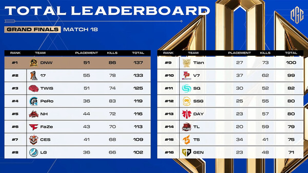 다나와 이스포츠, 총 137포인트로 PGC 첫 우승 달성