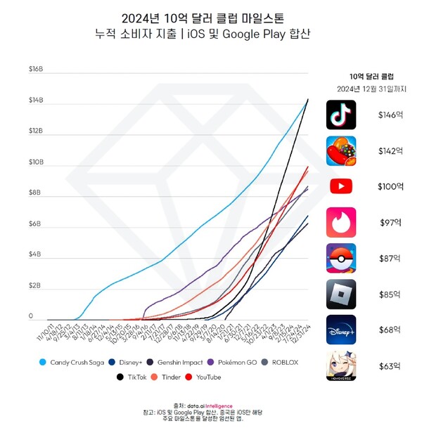틱톡, 2024년에도 전성기 이어가며 누적 소비자 지출 146억 달러로 역대 최대 매출 앱 등극 예상