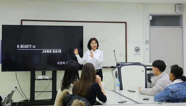 토탈 뷰티 브랜드 준오헤어 최명희 CBO가 지난 10일 가천대학교에서 국내외 재학생들을 대상으로 ‘글로벌 K-뷰티’ 특강을 진행했다.