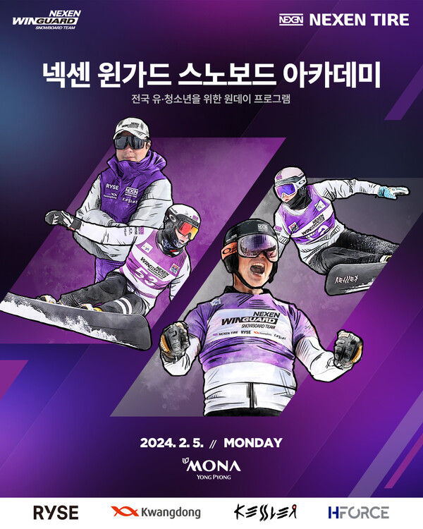넥센타이어(대표이사 강호찬)가 ‘넥센 윈가드 스노보드팀’ 선수단과 함께하는 아카데미를 개최하며 유소년과 청소년 선수들을 대상으로 참가자를 모집한다고 15일 밝혔다.