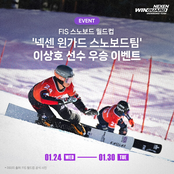 넥센타이어(대표이사 강호찬)가 ‘넥센 윈가드 스노보드팀’ 이상호 선수의 2023-2024 국제스키연맹(FIS) 스노보드 월드컵 시리즈 우승을 기념하며 이벤트를 실시한다고 24일 밝혔다.