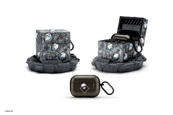 이번 한정판 컬렉션은 이타도리 유지, 양면 스쿠나 등 주술회전의 인기 캐릭터 케이스를 포함한 다양한 테크 액세서리가 출시될 예정이다. 특히 스페셜 제품으로 애니메이션에 등장하는 주술 아이템인 주물 ‘옥문강’ 모양의 에어팟 케이스를 선보였는데, 케이스 내부에 고죠 사토루 에어팟 케이스가 별도로 포함되어 있어 주술회전의 상징을 소장할 수 있는 요소뿐만 아니라 편의성도 고려해 제작되었다.