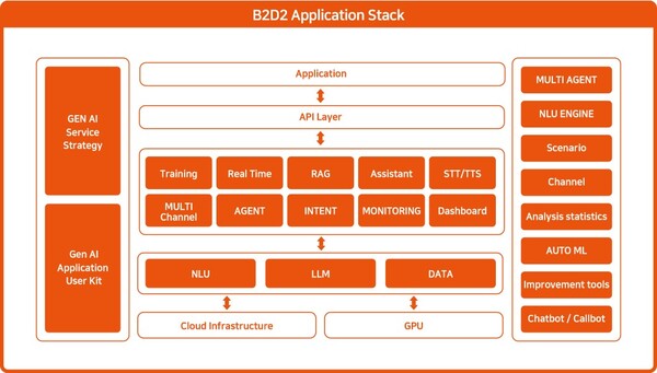 ‘B2D2 Application Stack’은 기업이 보유한 데이터와 대규모 언어 모델(LLM) 및 자연어 이해(NLU)를 결합하여 고도화된 대화형 AI 챗봇과 콜봇 생성은 물론, 고품질의 문서 작성과 관리 및 맞춤형 학습 경험을 촉진한다. 이를 통해 기업은 AI 기술을 다양한 업무 영역에 효과적으로 통합할 수 있게 됐다.