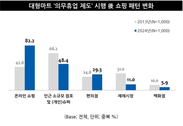 <대형마트 의무휴업>, “방문했으나 이용 못 한 경험 있어”... 제도 시행 후 ‘온라인 쇼핑’ 비중 크게 늘어