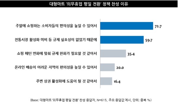 61.5%, “의무휴업 평일 전환 정책 찬성한다” 찬성 이유로 ‘소비자 편의성’ 핵심으로 꼽아