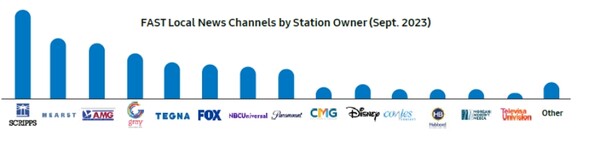 삼성에 따르면 TV 프로그램에 이어 두 번째로 많은 FAST를 제공하는 뉴스 및 오피니언 채널은 미국 채널 시장의 18%, 333개의 채널을 차지하고 있다. ABC 뉴스, CNN, 폭스 뉴스의 뉴스룸에서 제작한 프로그램이나 지역 뉴스 채널의 피드가 이제 전체 FAST 뉴스 채널의 69%를 차지한다. 이 부문 전체에서 지역 뉴스는 사용자들이 가장 많이 찾는 분야이며, 특정 국가 시장의 라이브 피드 전용 FAST 채널이 231개에 달한다. 국제 뉴스 채널은 51개이다.