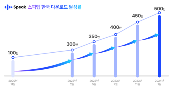 스픽은 국내 출시 이후 1년만인 2020년 11월 100만 누적 다운로드를 달성했으며 2023년 2월에는 300만, 같은 해 7월에는 400만 등 자체 기록을 연이어 돌파하며 가파른 성장세를 이어오고 있다.