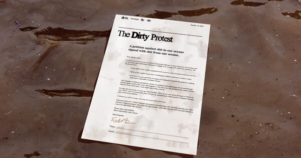 크리에이티브 에이전시인 언커먼 스튜디오(Uncommon Studio)는 해양 생태계에 대한 하수 오염의 위험성에 대한 인식을 높이기 위해 온라인 청원인 "더러운 항의(Dirty Protest)" 캠페인을 실시했다. 이 캠페인은 100만 명의 이름이 수집되면, 대중은 하수로 오염된 물로 만든 잉크로 문자 그대로 'sh*t'라고 서명해서 전 세계 정치인 및 정부 기관으로 편지를 보낼 수 있다.