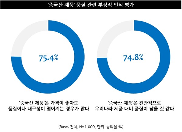 74.8%, “중국산 제품, 국산 대비 품질 낮아”... 고연령층일수록 중국산 ‘품질 개선’에 대한 체감도 높아