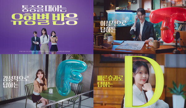 ‘통증을 대하는 유형별 반응’의 MBTI 콘셉트로 선보인 그날엔 신규 TV 광고에서 이성적으로 답하는 ‘T’, 감성적으로 답하는 ‘F’라며 통증에 대한 상반된 반응을 보이는 아이유가 나온다. 이어 ‘빠른 효과로 답하는 ‘D’, 더 빠르고 강한 액상형으로 당신이 바로 웃을 수 있게’라는 멘트와 함께 그날엔덱스연질캡슐이 통증에 빠른 효과가 있다는 것을 보여준다.