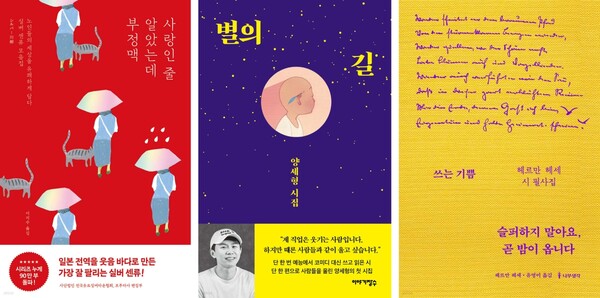 그 밖에 '필사' 트렌드가 SNS에서 지속되며 필사를 테마로 한 시집도 꾸준히 출간되는 흐름이다. 올 1월 출간된 <슬퍼하지 말아요, 곧 밤이 옵니다 : 헤르만 헤세 시 필사집>은 묵직한 울림을 주는 헤르만 헤세의 시 100편을 필사하며 하루하루 삶의 충일감을 높일 수 있도록 구성됐다.