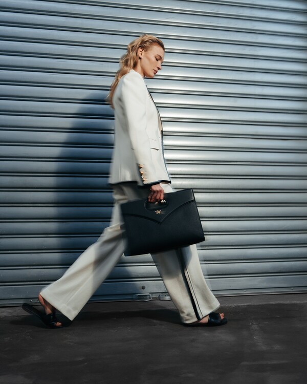 ‘스페니쉬 송아지 가죽 다이아몬드 숄더백’ 역시 바이에른 다이아몬드에서 영감을 받은 스페인산 송아지 가죽 소재 숄더백이다. ‘형태는 기능을 따른다(form follows function)’라는 바우하우스 디자인 원칙에 충실한 기하학적 모티프가 앞면 플랩 클로저에 정교하게 퀼팅된 것이 특징이다.