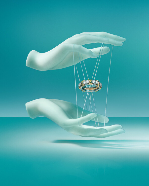댄 토빈 스미스와 수상 경력에 빛나는 세트 디자이너 레이첼 토마스는 캠페인을 위해 실물보다 더 큰 세트를 제작했다. 런던에서 촬영한 이 세트는 미니어처부터 대형 스케일 모델까지 원근감의 변화를 통해 매끄럽게 어우러진다. 포스트 프로덕션 효과에 의존하는 대신 애니메이션 프로젝션을 배경으로 사용하고 세트에서 실제 구름을 만들기 위해 연기를 연출하여 캠페인의 복잡하고 정교한 환영을 카메라에 세심하게 담아냈다. <With Love, Since 1837> 캠페인은 평범한 사물과 단순한 소재를 사용하여 조명과 카메라 움직임의 리듬을 통해 드라마에 생동감을 불어넣었다. 무어의 창문의 드라마틱한 구성을 스케일과 시점의 변화에 중점을 둔 댄 토빈 스미스의 현대적이고 조각적인 스타일로 해석한 이 영상과 스틸 사진은 티파니의 유산을 현대적인 관점에서 기념한다.