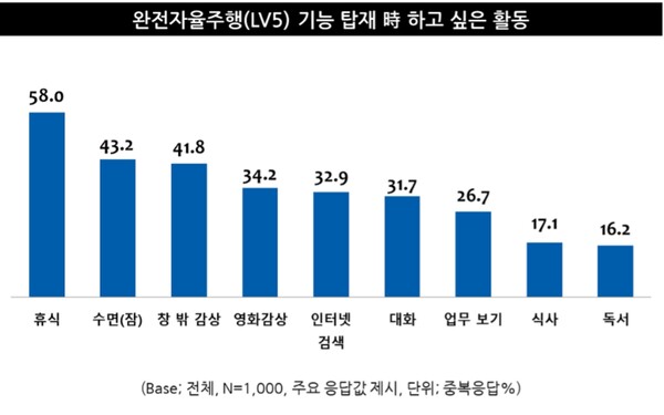 ’완전자율주행자동차’ 상용화는 10년 후 예상... 완전자율주행 기능 탑재 시 ‘휴식’에 대한 니즈 높은 편
