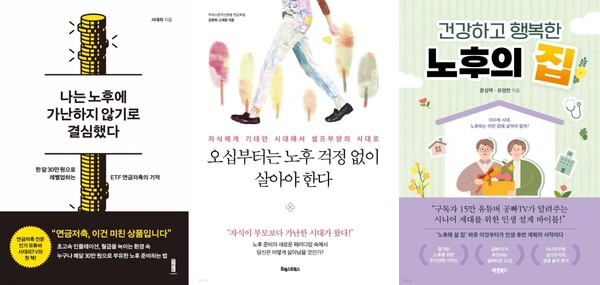 2023년 '노후·노년의 삶' 키워드 도서 베스트셀러 2위 <나는 노후에 가난하지 않기로 결심했다>는 연금저축펀드 전문 인기 유튜버 '서대리'가 연금 절세상품을 200% 활용해 부담없이 노후를 준비하는 방법을 공개한다. 그 밖에 노후 설계 전문가 강창희 저자의 <오십부터는 노후 걱정 없이 살아야 한다>는 새로운 패러다임 속 풍요로운 노후를 위한 마인드 정립부터 실질적인 노후 대비 상품 활용 방법까지 조언을 담았고, <건강하고 행복한 노후의 집>은 은퇴 후 노후에 살 집을 고민하는 이들에게 실버타운, 공공임대주택 등 다양한 주거 형태 및 알짜배기 정보를 전한다.