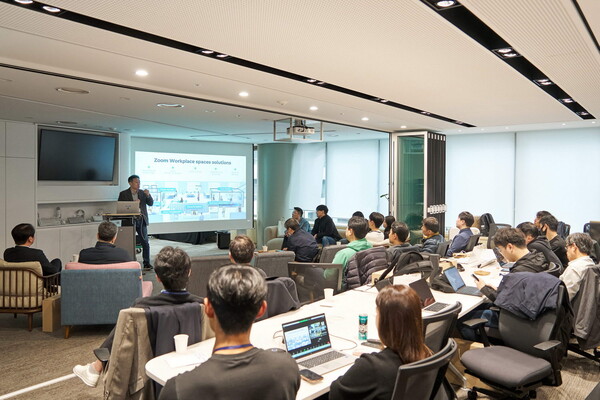 데모 투어 이후에는 로지텍과 로지텍의 어플라이언스 파트너사인 줌이 하이브리드 워크플레이스 트렌드에 대해 소개하는 세션이 이어졌다. 로지텍은 하이브리드 워크 시장의 현주소와 이에 대해 가지고 있는 비전에 대해 소개하고, 행사 참석 고객과의 질의응답을 통해 하이브리드 워크플레이스 트렌드에 부합하는 새로운 업무 방식 및 워크플레이스 모델을 제안했다. 로지텍에 이어 발표를 진행한 줌은 AI를 통해 업무 환경을 혁신하고자 하는 비전을 공유하고, 로지텍의 화상회의 전용 소프트웨어와 함께 사용 가능한 화상회의 솔루션 ‘줌 룸(Zoom Rooms)의 기능에 대해 설명하는 시간을 가졌다.