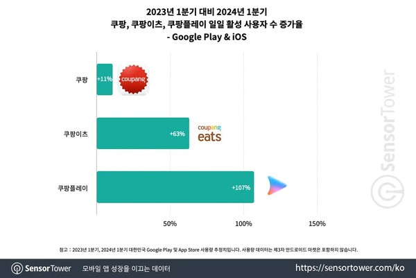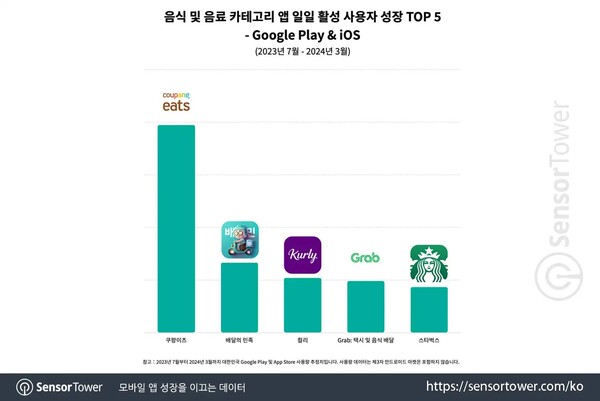 이러한 성장세에 힘입어 《쿠팡이츠》는 2023년 3분기부터 2024년 1분기까지 한국 시장 음식 및 음료 앱 중 일일 활성 사용자 수 성장 1위에 오르는 성과를 달성했습니다.