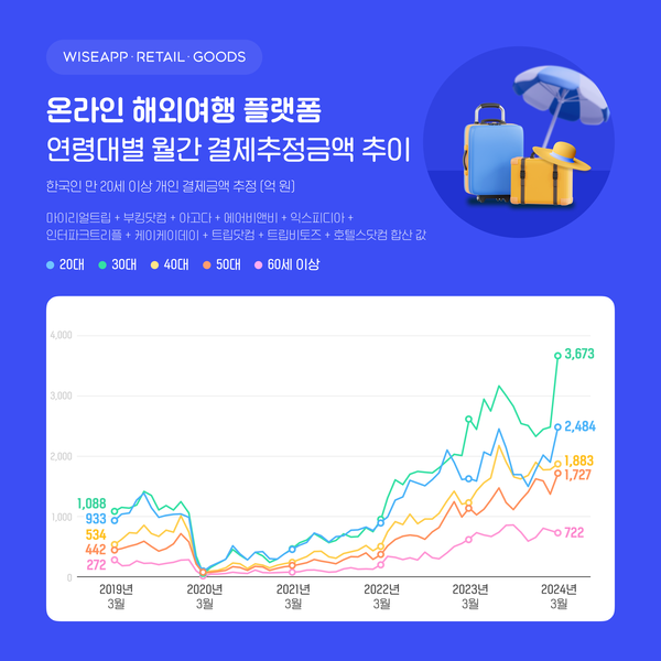 온라인 해외여행 플랫폼 결제추정금액 세대별 1위는 30대로 역대 최대 규모 달성