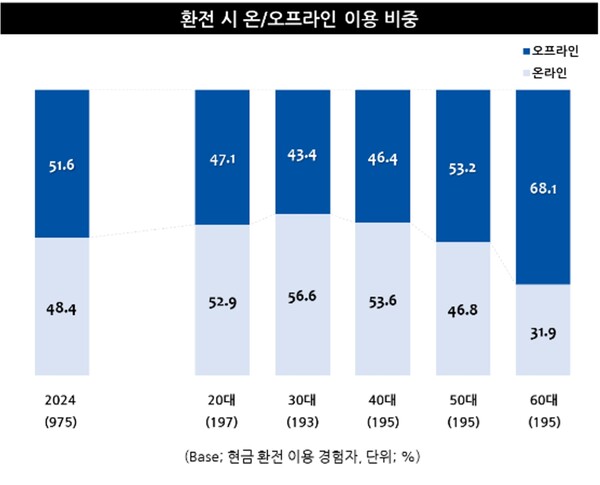 외화 환전 시 온·오프라인 비중 큰 차이 없어... 단, ‘편의성’ 중요시하는 저연령층, ‘온라인’ 환전 선호하는 편