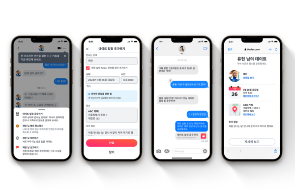 이용자는 ‘데이트 일정 공유하기’로 내 데이트를 궁금해 할 친구나 부모님에게 데이트 상세 정보를 공유할 수 있다. 이용자는 앱에서 바로 데이트 장소, 날짜, 시간, 상대방의 사진 등 다양한 정보를 링크로 공유할 수 있다. 틴더 앱에서 최대 30일 전부터 데이트 계획을 무제한으로 생성할 수 있으며, 공유할 사람을 자유롭게 지정할 수 있다.