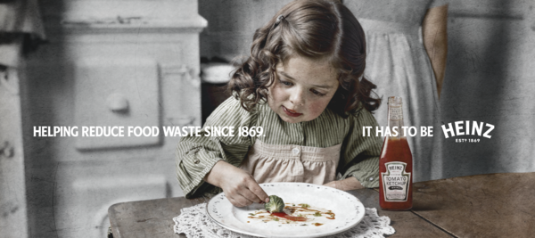 하인즈는 '1869년부터 음식물 쓰레기 줄이기(Helping reduce food waste since 1869)'라는 캠페인을 시작했다. 이는 수년간 하인즈 토마토 케첩을 사랑해 온 팬들이 어떻게 이 제품에 대한 애정을 보여줬는지 보여주기 위해 만든 소박한 활동으로, 먹을 수 있는 음식이 불필요하게 쓰레기통에 버려지는 것을 방지하는 데 도움이 된다. 이 캠페인의 AI 비주얼은 버려질 수 있는 음식이 소비되는 세 가지 다른 시대를 보여준다.