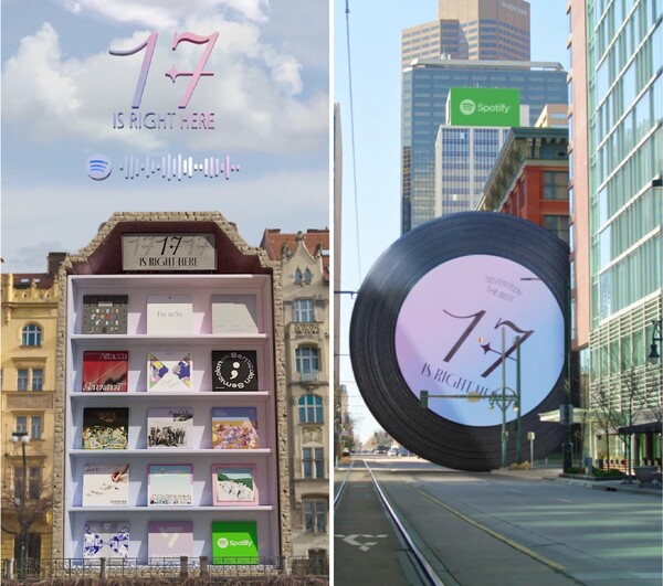 스포티파이는 29일 공식 X(구 트위터) @SpotifyKpop에 화려한 컴퓨터그래픽(CG) 영상을 공개하며 캠페인의 시작을 알렸다. 해당 영상은 거대한 '17 IS RIGHT HERE' 바이닐(LP)이 멋진 풍경을 지나 도시로 이동해 9년에 걸친 세븐틴의 음반으로 장식된 건물을 만나는 스토리로, 전 세계에서 사랑받는 세븐틴의 발자취를 기념하기 위해 제작됐다. 또한, 오는 3일부터 스포티파이 K-Pop ON! 공식 유튜브 및 비디오 팟캐스트 채널을 통해 다채로운 게임을 즐기는 모습, 인터뷰, 촬영 비하인드 등 다양한 독점 콘텐츠를 제공할 예정이다.